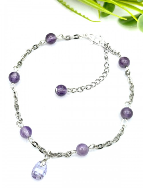 Браслет на ногу с аметистом и фианитом.