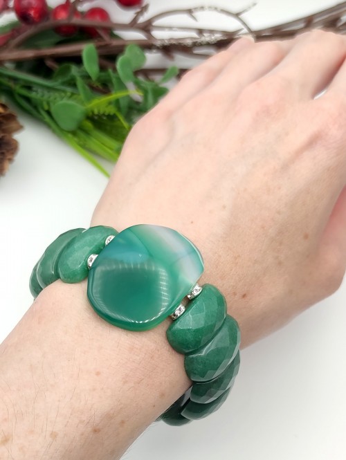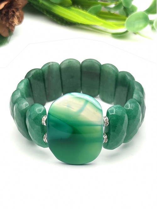 Крупный браслет с зелёным агатом и гранёным авантюрином.