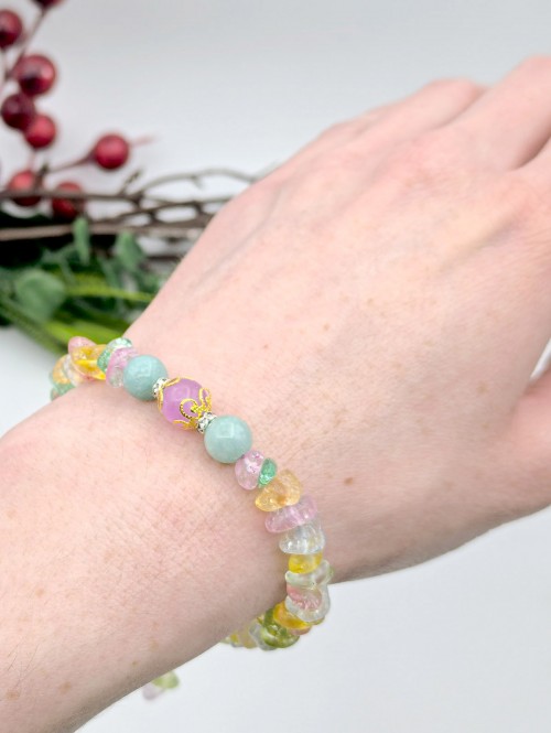 Браслет из мятного, лавандового и разноцветного кварца