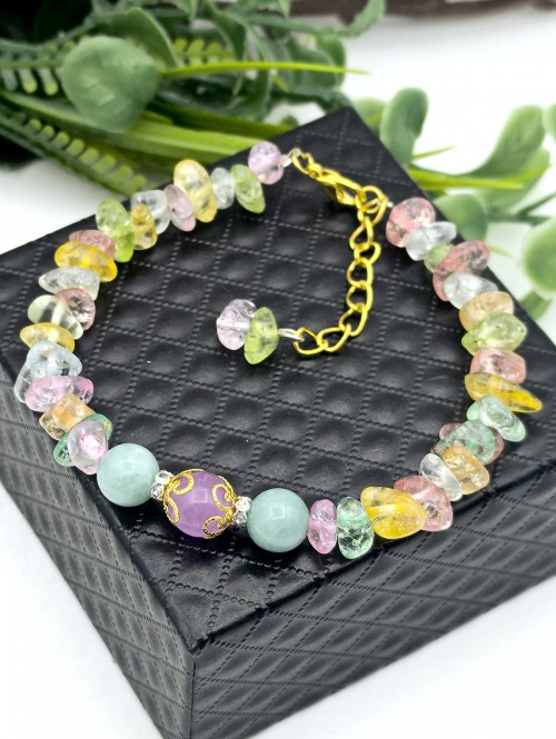 Браслет из мятного, лавандового и разноцветного кварца.