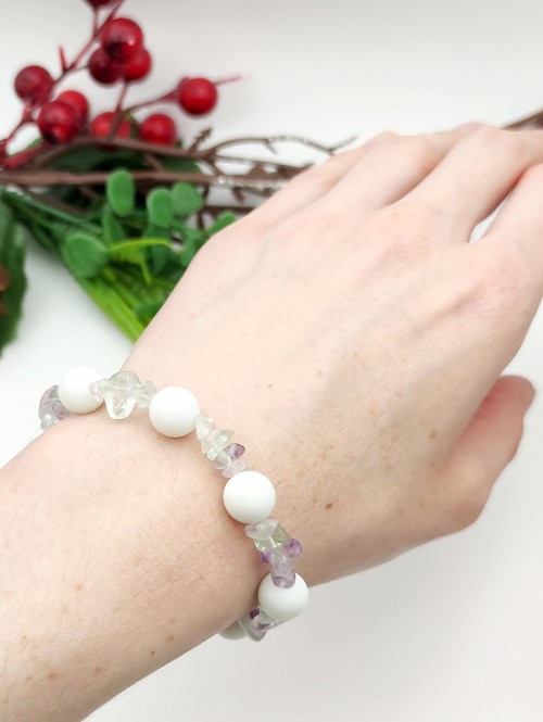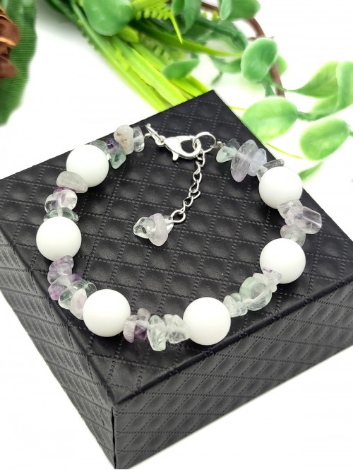 Браслет с матовым белым агатом и флюоритом