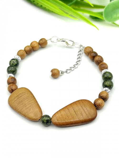 Браслет из змеевика и дерева
