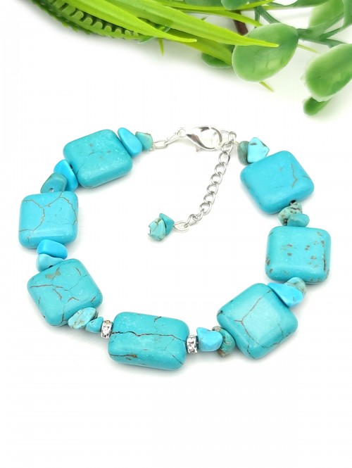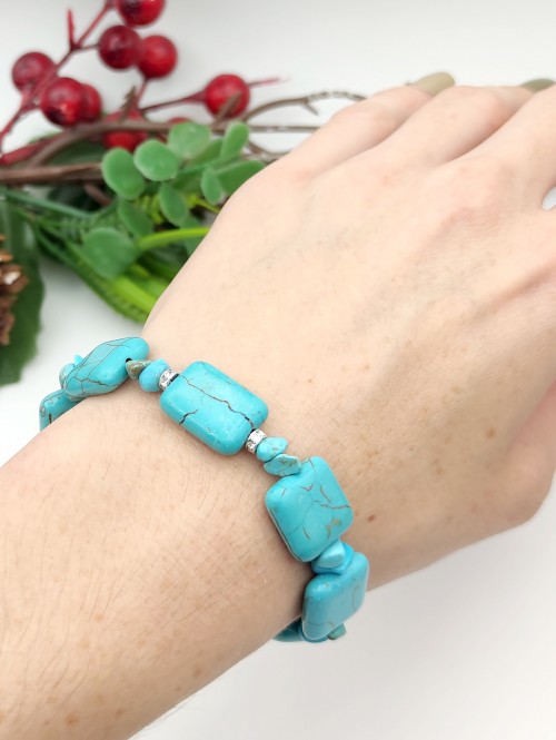 Браслет из говлита (стилизация под бирюзу). Вставки с фианитами.