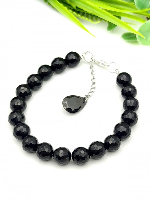 Браслет из агата с огранкой. На конце цепочки фианит.