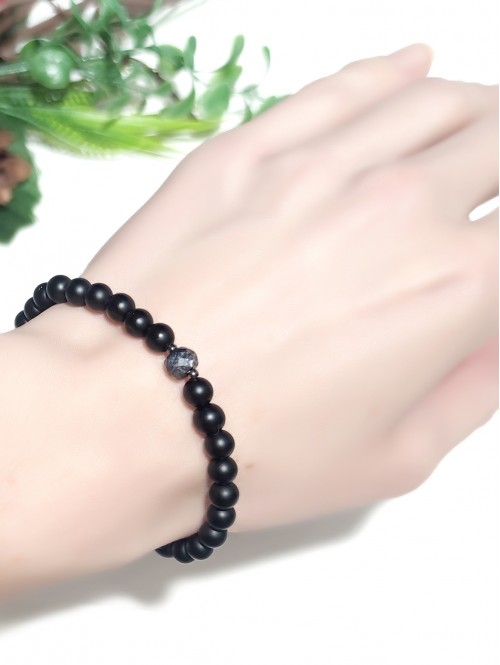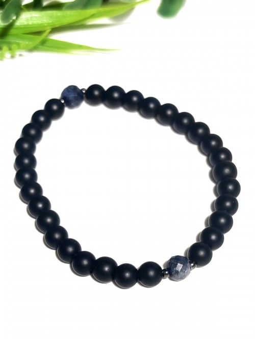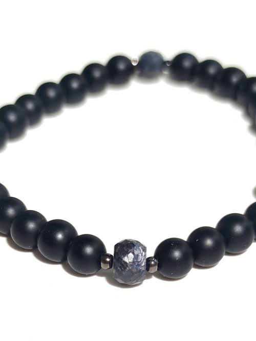 Браслет для мужчин и женщин из сапфира с огранкой и матового черного агата.