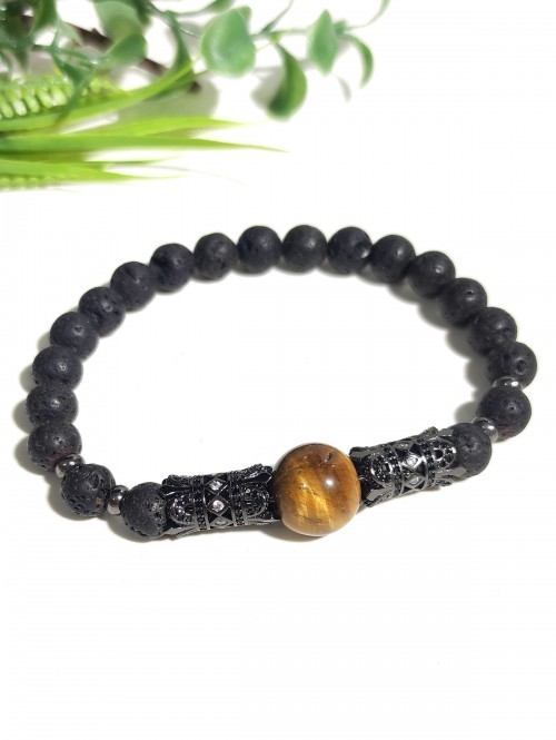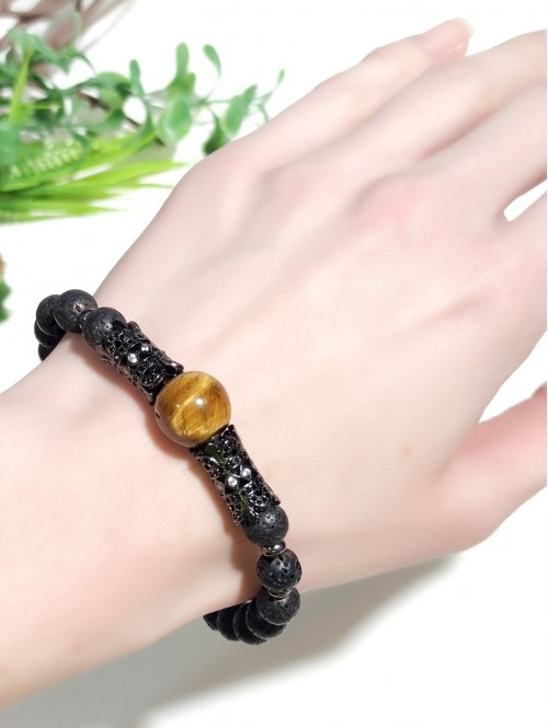 Браслет из тигрового глаза и лавы