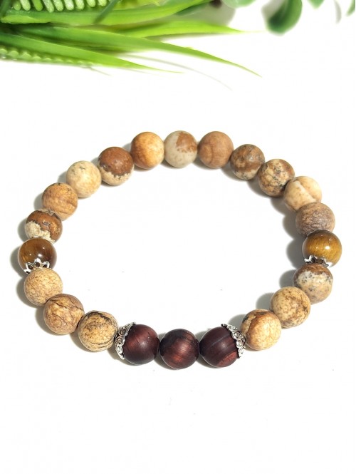 Браслет из пейзажной яшмы, тигрового и бычьего глаза