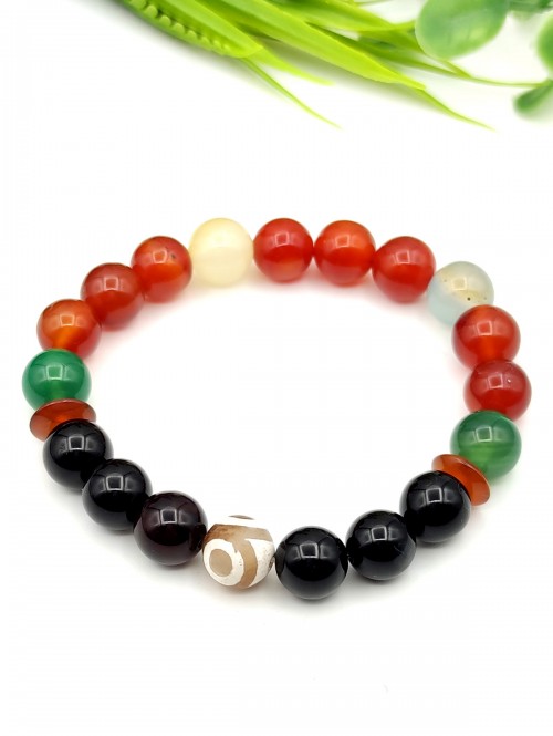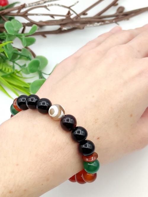 Браслет из агата, оникса и сердолика с тибетской бусиной Дзи