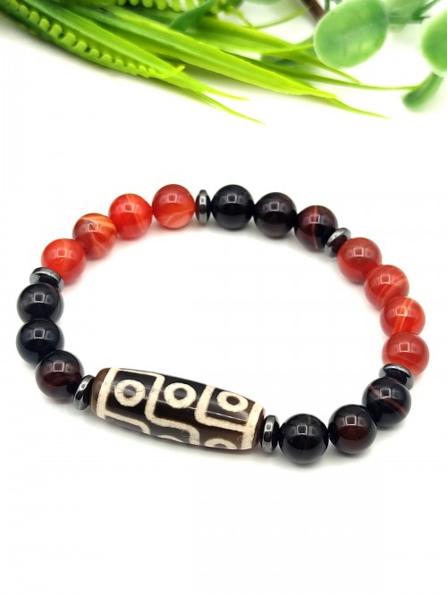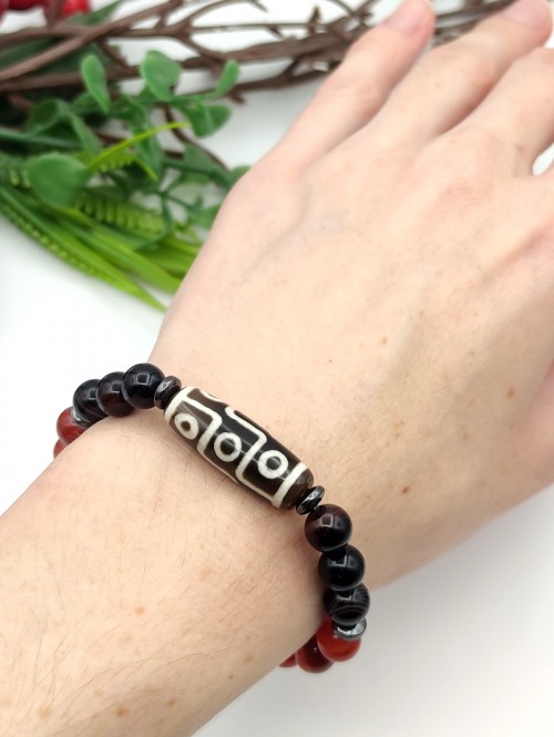 Браслет из агата, оникса, гематита и сердолика с тибетской бусиной Дзи