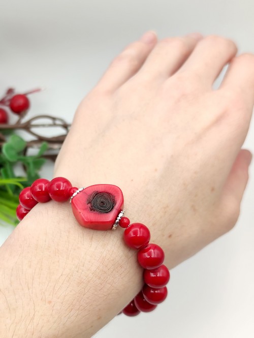 Браслет из прессованных кораллов. В середине коралл не прессованный (20,3х20 мм).