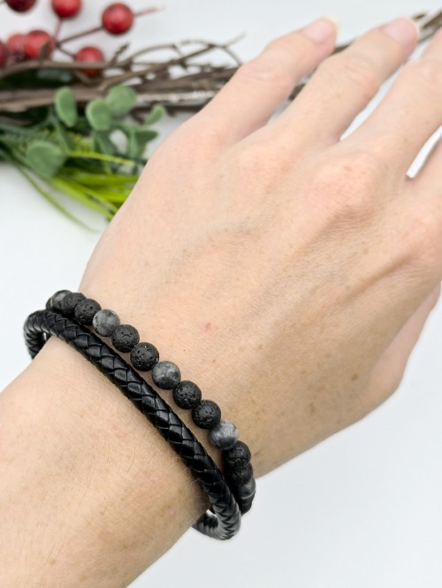 Браслет мужской с лабрадором и лавой