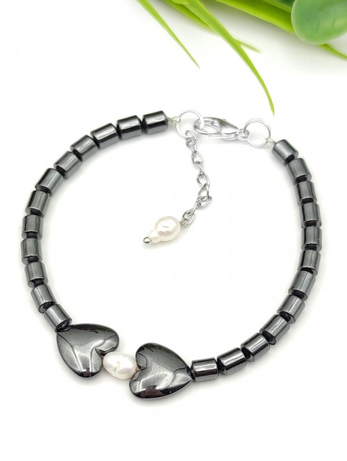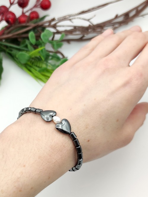 Браслет из гематита и жемчуга