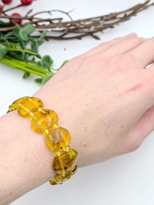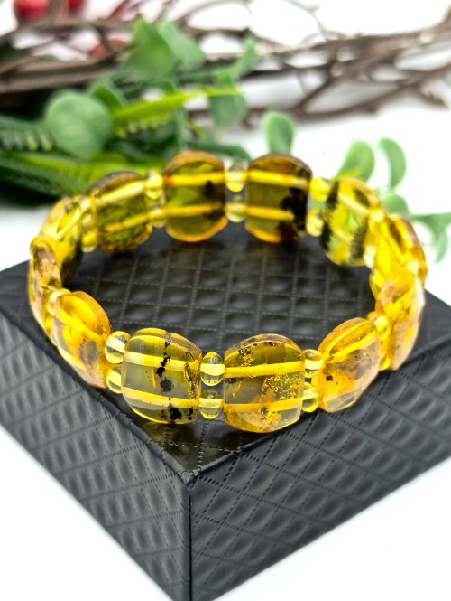 Янтарь обладает подтверждённой веками целебной силой. Лечебное действие обусловлено наличием в составе янтарной кислоты. Помогает при проблемах со щитовидной железой, положительно влияет на кровеносную систему.