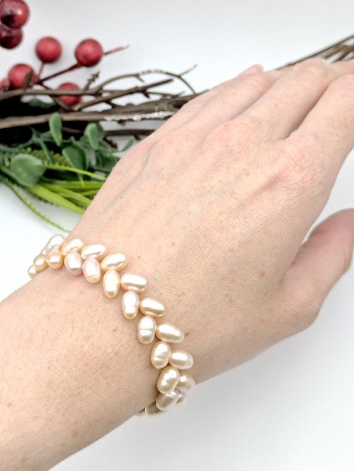 Браслет из персикового речного жемчуга.