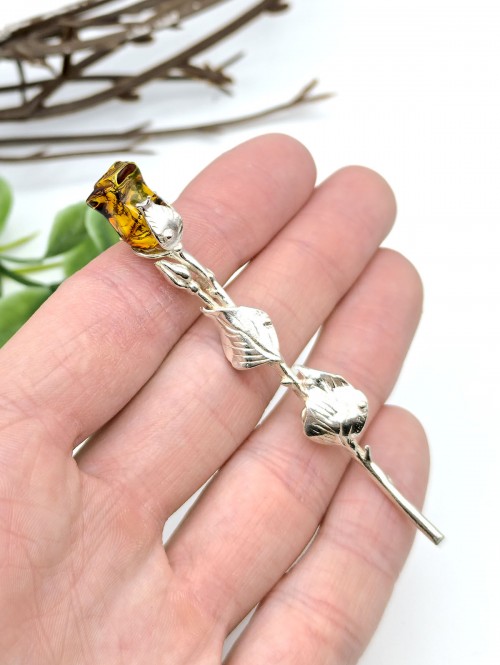 Брошь Розочка из натурального балтийского янтаря (Калининград).
