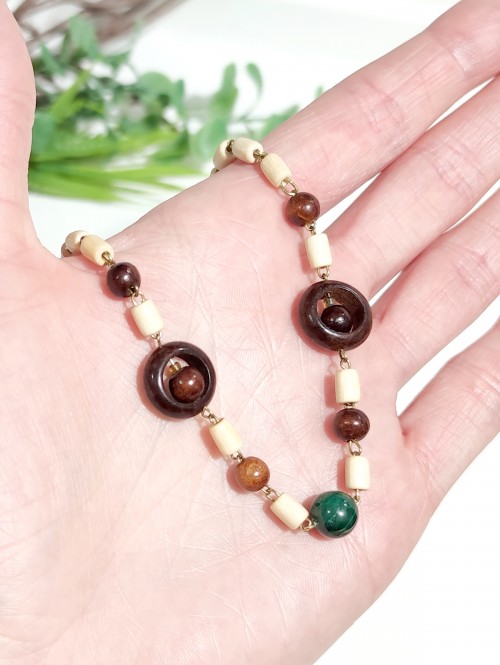 Бусы из малахита и дерева