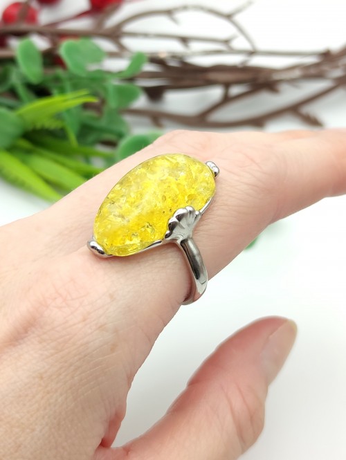 Кольцо с жёлтым бернитом (сплав смол и янтаря).