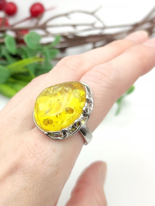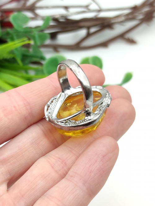 Кольцо с жёлтым бернитом (сплав смол и янтаря).