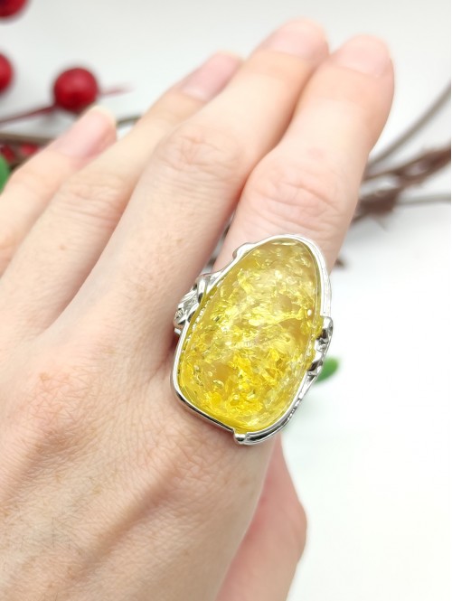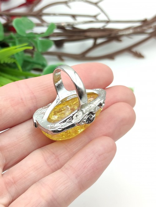 Кольцо с жёлтым бернитом (сплав смол и янтаря).