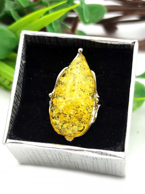 Кольцо с жёлтым бернитом (сплав смол и янтаря).