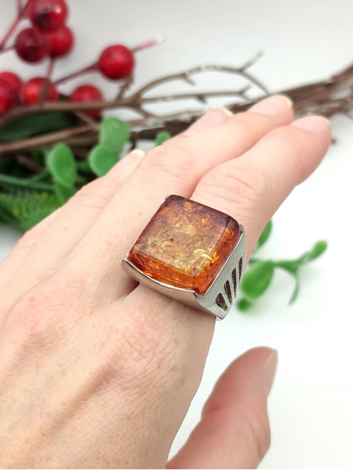 Кольцо с коньячным бернитом (сплав смол и янтаря).