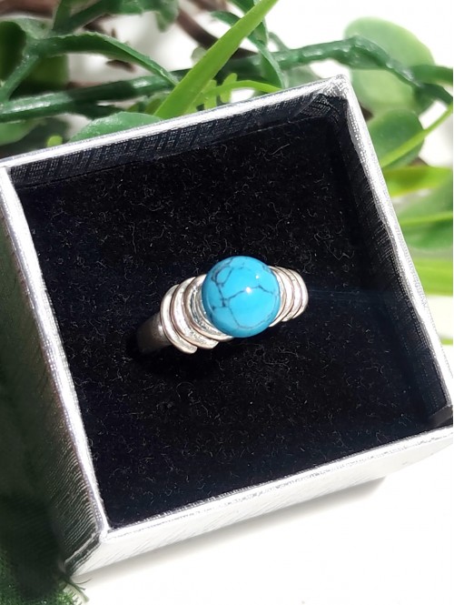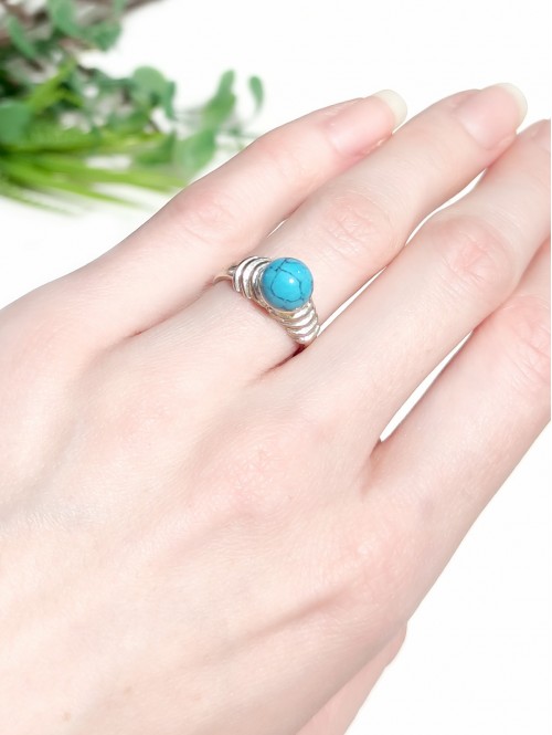 Кольцо посеребренное с говлитом (стилизация под бирюзу)