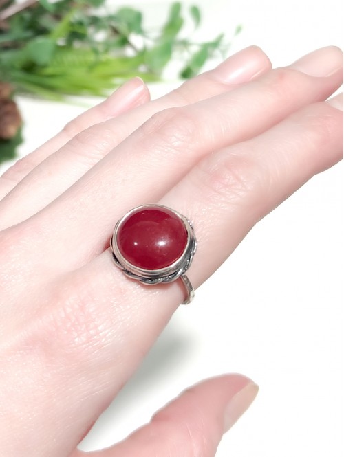 Посеребренное кольцо с вишневым агатом.