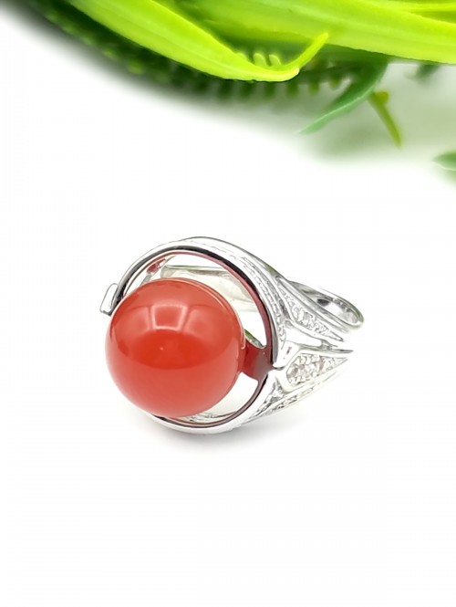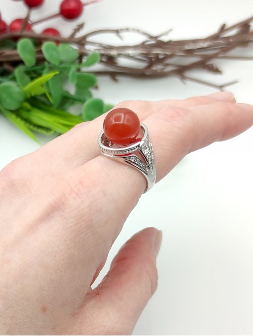 Кольцо с сердоликом и фианитами. Посеребрение с оксидированием.