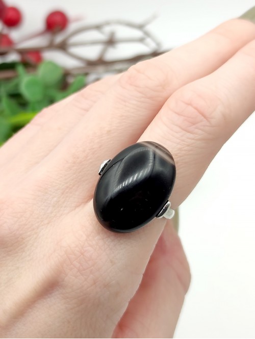 Безразмерное кольцо с арабским полосатым ониксом.