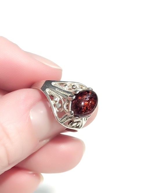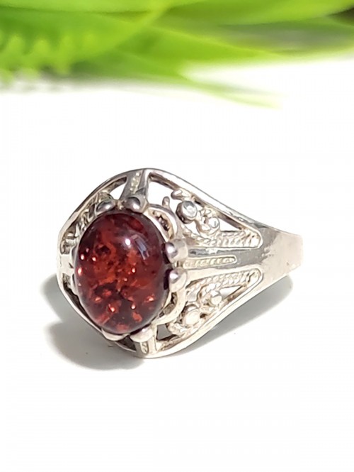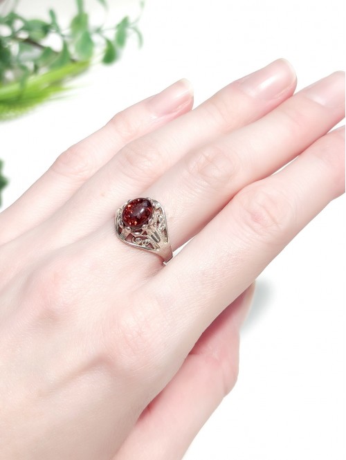 Кольцо посеребренное с коньячным балтийским янтарем (калининградским)..