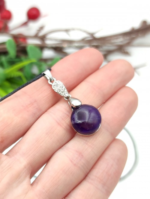 Подвеска с натуральным аметистом. Вставка с фианитами.