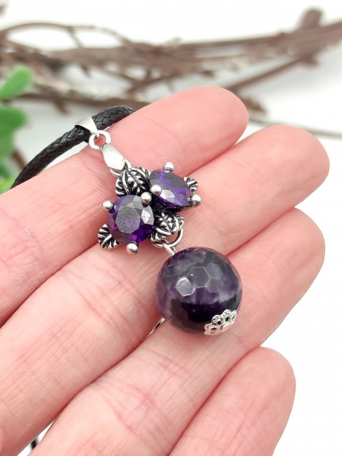 Подвеска посеребренная с гранёным аметистом и фианитами