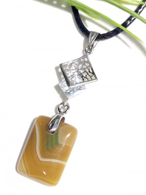 Подвеска с желто-оранжевым агатом и фианитом.