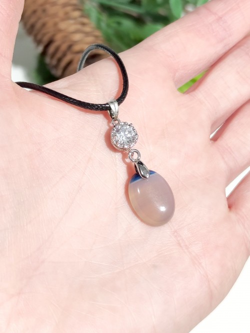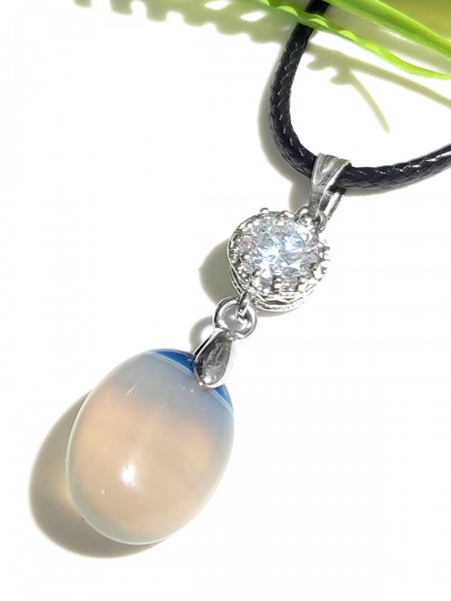 Подвеска с бело-голубым агатом и фианитом.