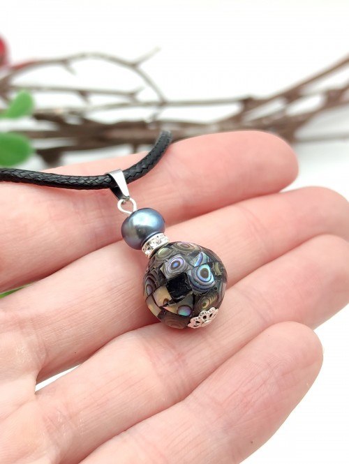 Подвеска из халиотиса (перламутра) и синего речного жемчуга. Вставка с фианитами.