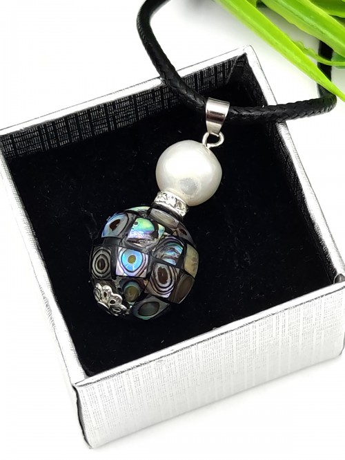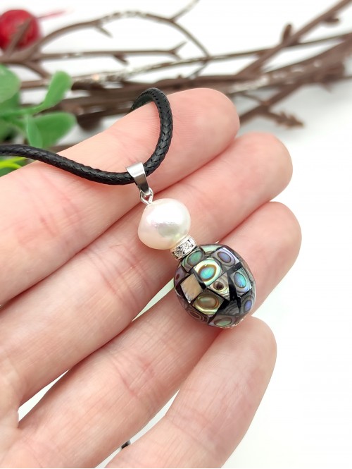 Подвеска из халиотиса (перламутра) и барочного жемчуга. Вставка с фианитами.