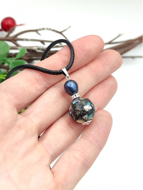 Подвеска с халиотисом и синим жемчугом