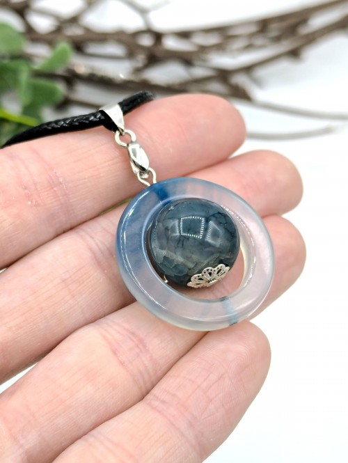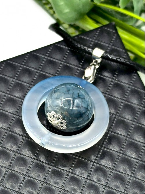 Подвеска с жёлто-голубым агатом и агатом Вены дракона.
