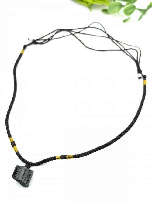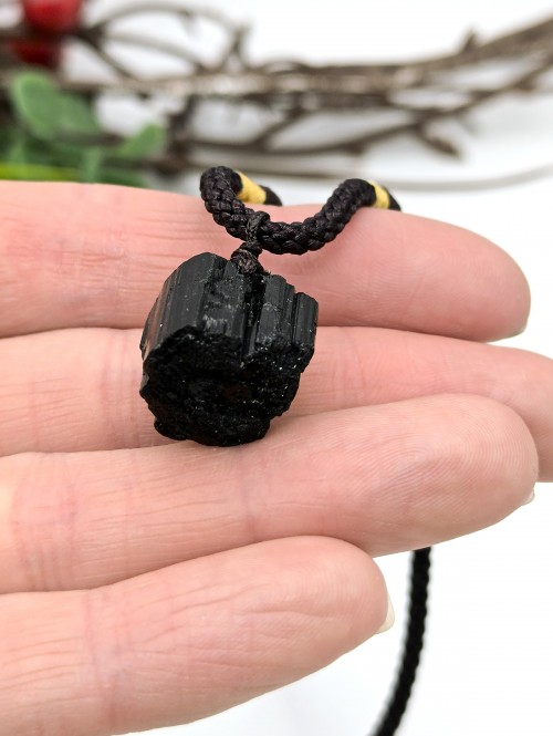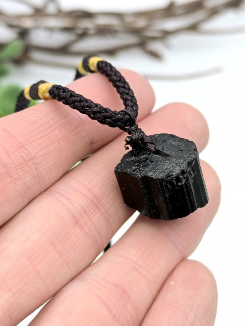 Подвеска с черным турмалином (шерлом). Длина шнурка регулируется.