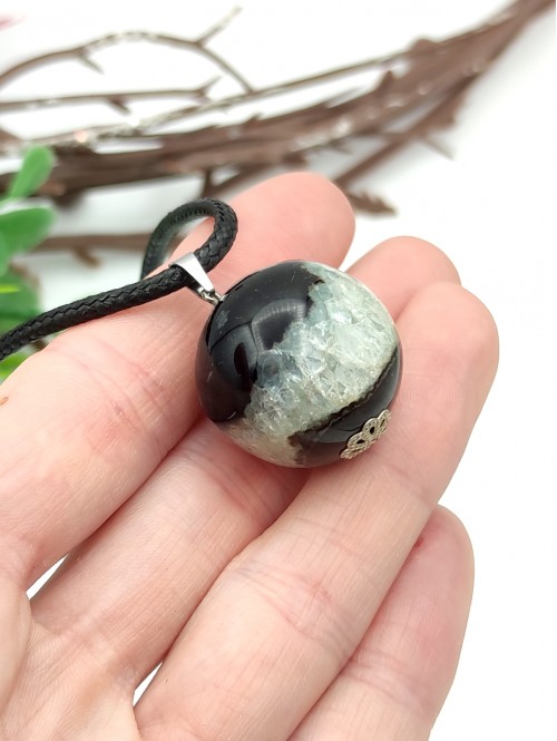 Подвеска шарик из черно-зеленого агата