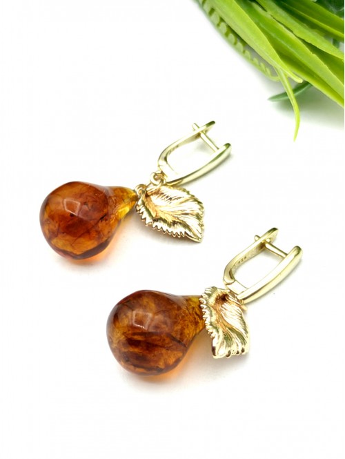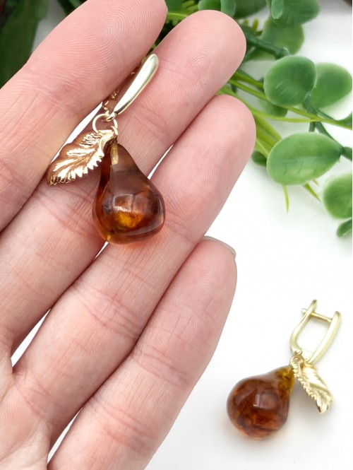 Серьги с натуральным балтийским янтарем в виде груши.
