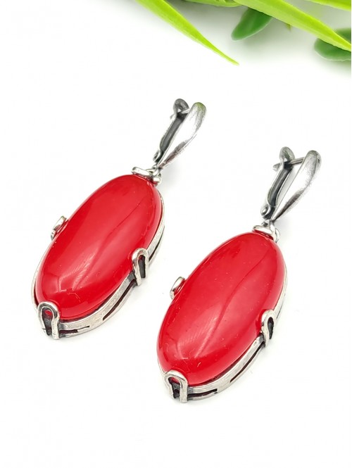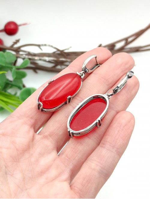 Серьги посеребренные с малиновым агатом