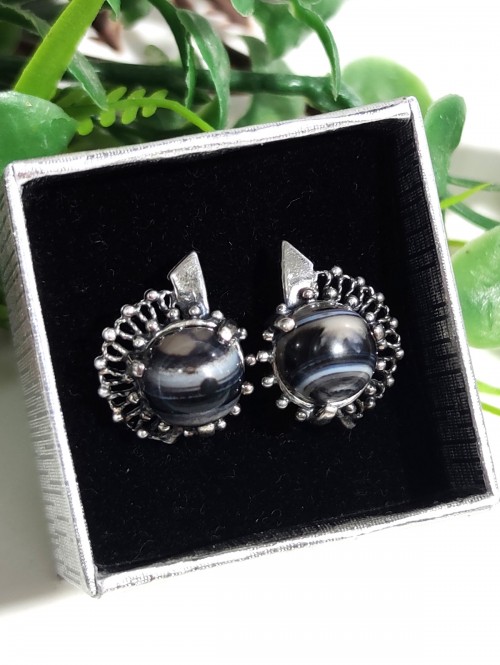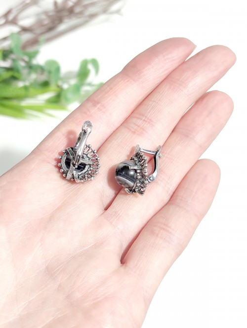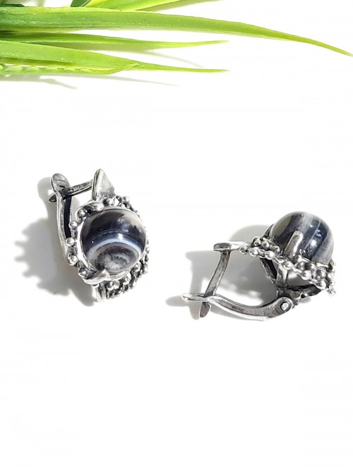 Серьги посеребренные с арабским ониксом (черным агатом)