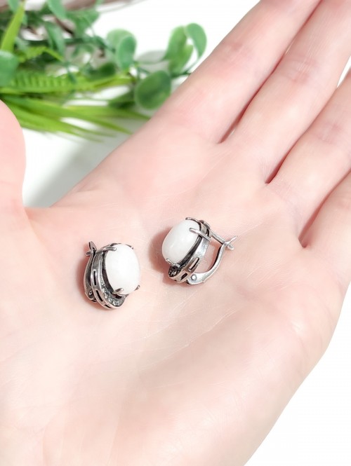 Размер камня - 12х10 мм, размер серьги - 16,7х12,7 мм.