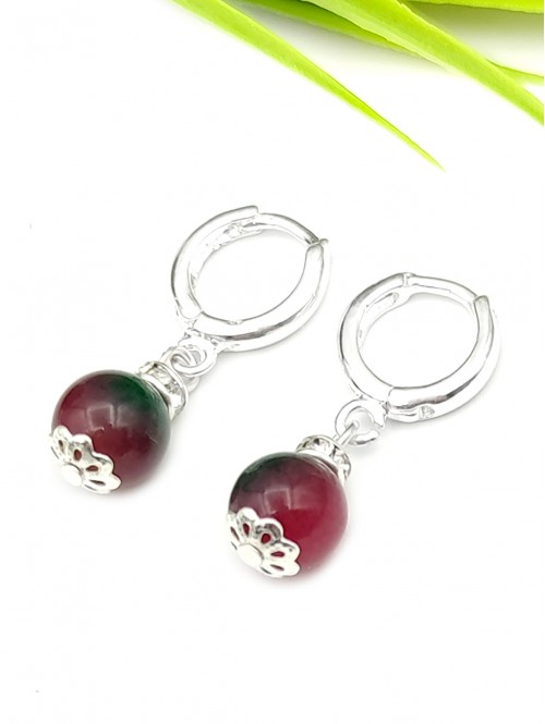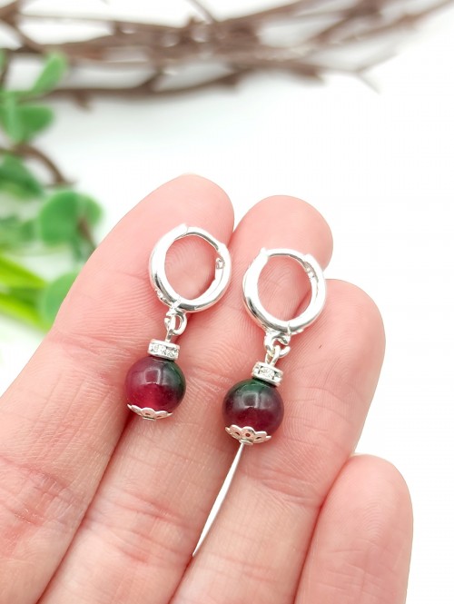 Серьги с малиново-зеленым агатом.