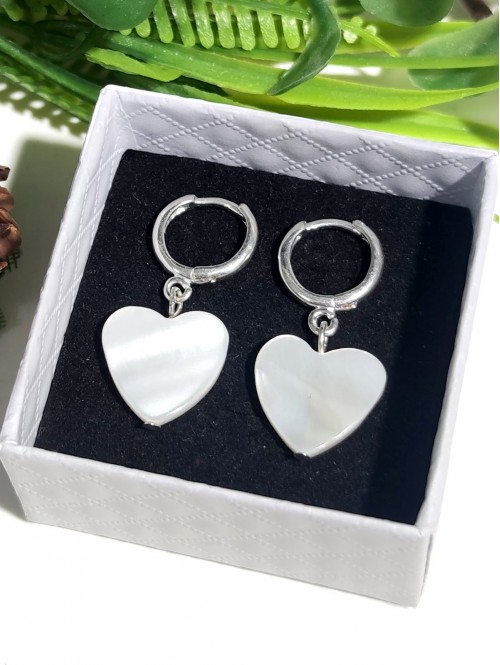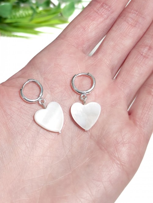 Серьги сердечки из белого перламутра.