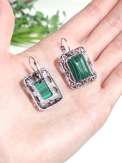 Серьги с малахитом (синтетическим)