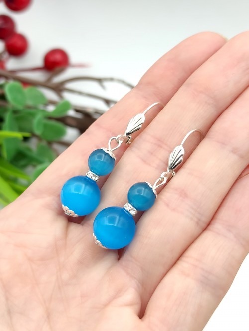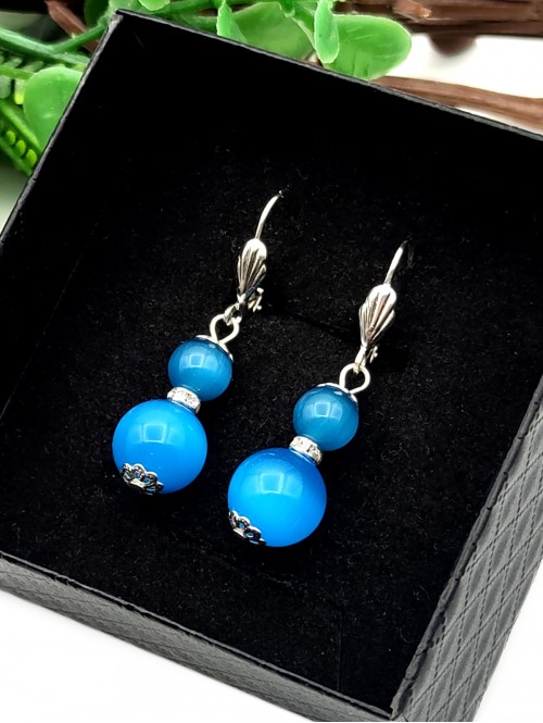 Серьги с голубым кошачьим глазом (синтетическим) и фианитами.