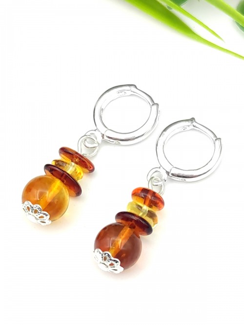 Серьги с коньячным и желтым балтийским янтарем высшего качества (Калининград).