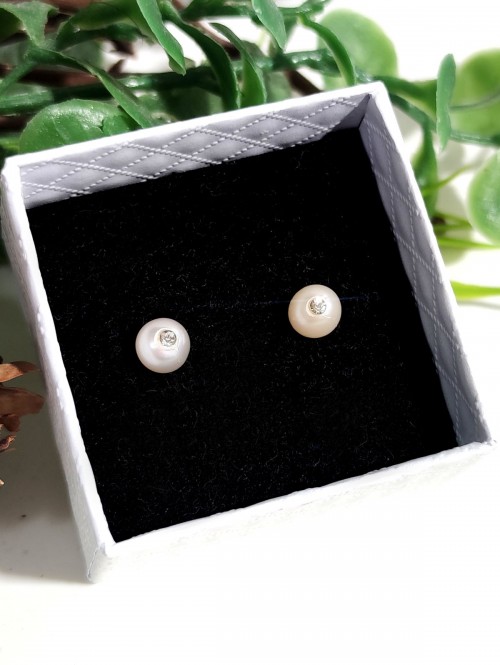 Серьги с жемчугом и фианитом